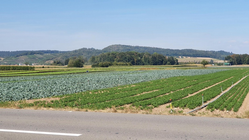 Eine Runde am späteren Nachmittag. Vorbei an Gemüse- und Salatfeldern, später auch an einem Feld mit Kürbissen.
