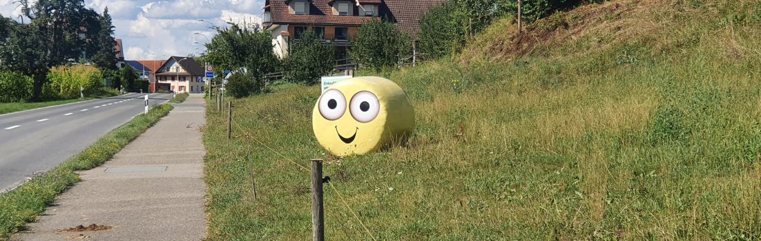 Als ich diesen Smile zum ersten Mal sah, glaubte ich noch, dass er einen Zusammenhang mit dem SlowUp hätte. Wie sich dann aber später herausstellte, besteht der Zusammenhang mit einer der Abstimmungen vom kommenden September. Immer wieder interessant, welche Sujet’s der Landwirtschaft einfallen, wenn es um Abstimmungen geht.