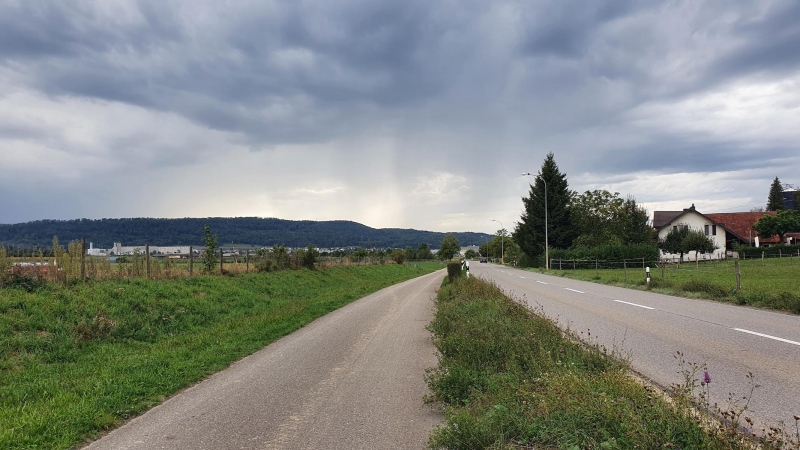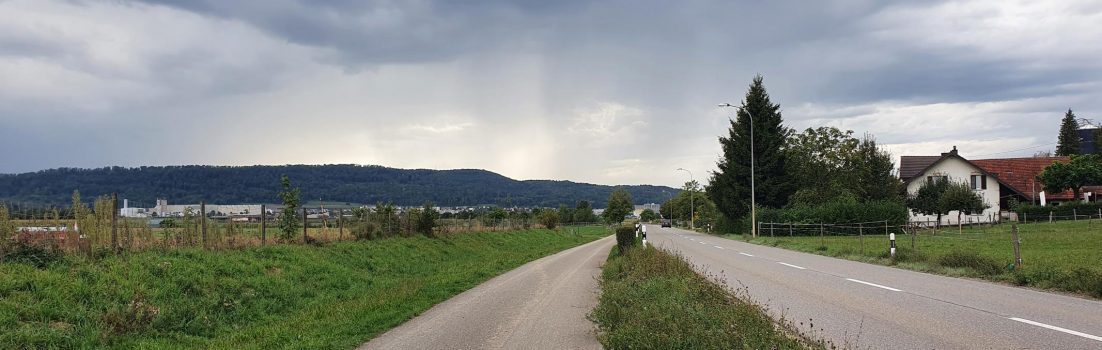 Ein Versuch am Regen vorbei zu kommen. Mit etwas Glück habe ich es fast geschafft, musste jedenfalls nur kurz unter ein paar Bäumen unterstehen.
