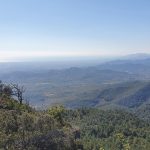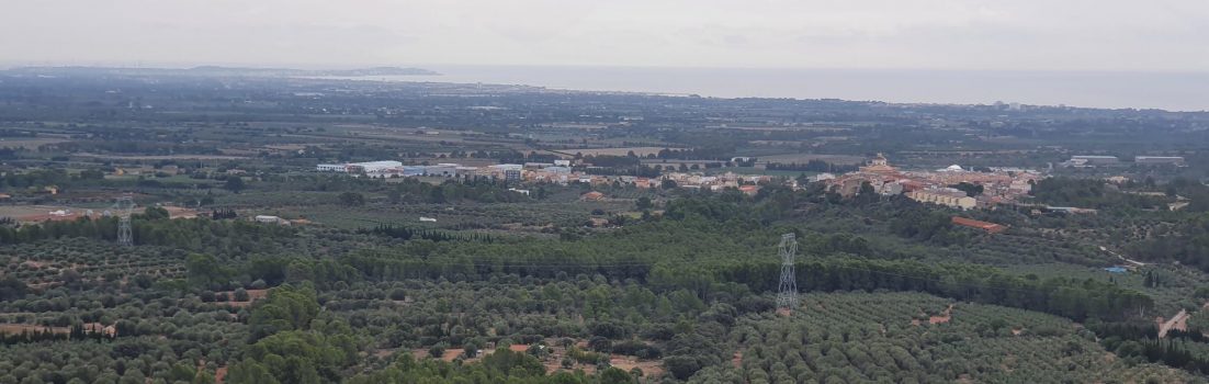 Die Aussicht über die Ebene hinunter bis ans Meer ist schön. Die Ortschaft in der Bildmitte ist Mas-roig del Camp.