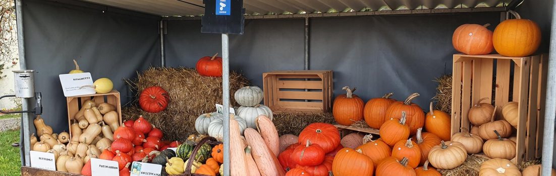Während der letzten paar Fahrten habe ich die angetroffenen Kürbis-Verkaufsstellen fotografiert. Im Vergleich zu den letzten Jahren hat sich vom Aussehen her kaum etwas verändert, höchstens die Menge der angebotenen Kürbisse scheint mir dieses Jahr kleiner geworden zu sein.