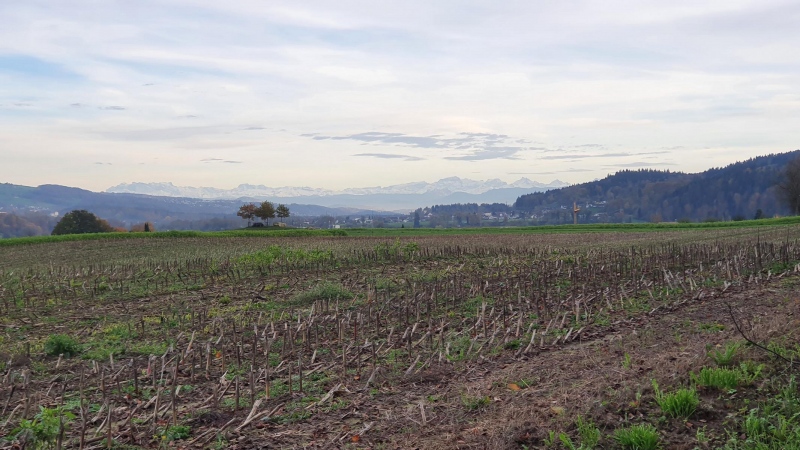 Als ich die Runde begann, wusste ich nicht so genau, wodurch sie mich führen würde. Erst als ich über das Birrfeld fuhr, sah ich in der Ferne den Alpenkamm. Damit war dann auch die Hauptrichtung dieser heutigen Runde gegeben.