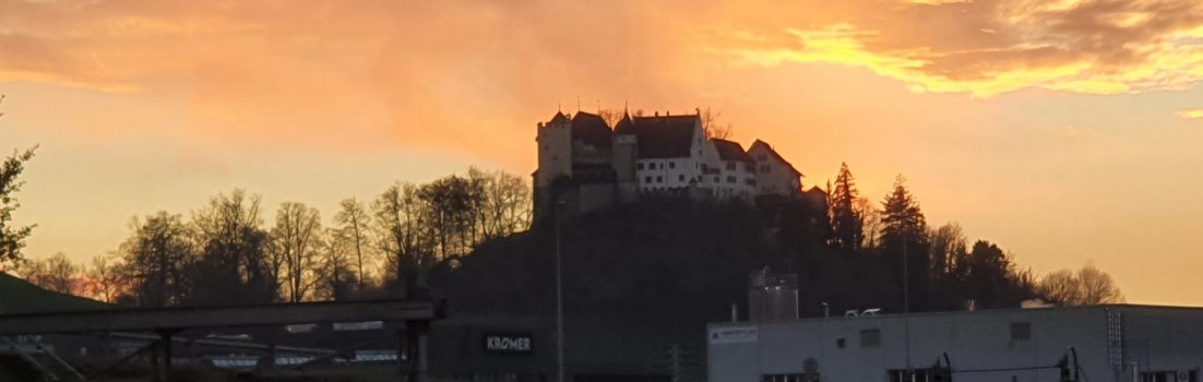 Die zweite Situation traf ich bei der Ankunft in Lenzburg an. Hier glühte der Himmel gerade über dem Schloss.