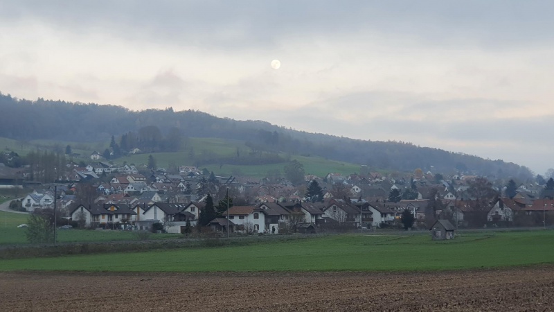 Immerhin riss der Nebel während der Fahrt das Surbtal hinauf kurz auf und machte den Blick auf den noch ziemlich runden Vollmond frei.