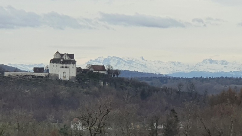 Quer über das Aaretal, hinüber zum Schloss Wildegg, dann weiter das Seetal hinauf und heute sogar bis hinüber zum Alpenkamm. Nicht immer ist die Sicht derart grandios wie heute.