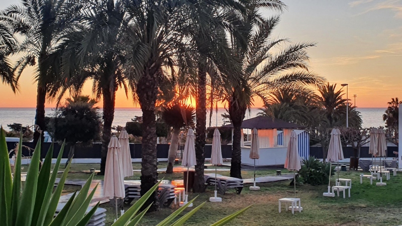 Gestern Mittag in Zürich bei Regen und winterähnlichen Temperaturen in den Flieger gesessen. Schon gestern bei der Ankunft war es hier sehr warm und wolkenlos. Heute Morgen überraschte uns das Wetter mit einem wunderbaren Sonnenaufgang.