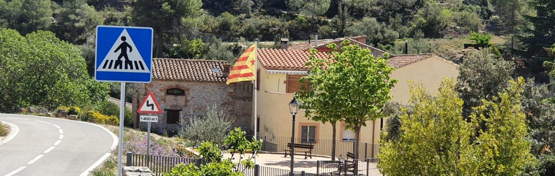 Regelmässige Leser dieser Zeilen mögen sich vielleicht noch an ein Bild dieses Dorfes aus früheren Zeiten erinnern. Irgendwie stolz weht da immer eine katalanische Fahne. Doch diesmal ist der Fleck um den Stern herum nicht blau wie sonst, sondern gelb.