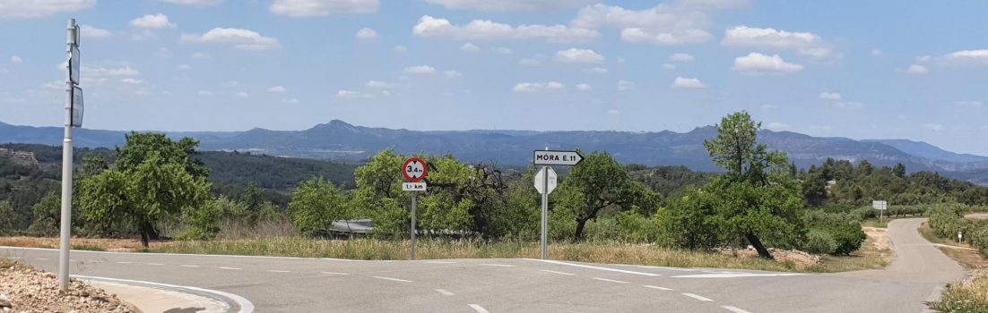 Die Reben an den vielen Berghängen sind nun in den letzten Tagen doch auch deutlich gewachsen. Auch das Wetter kann sich mal ändern. So hatten wir heute bei der Auffahrt auf den Coll Fatxes das Glück auf unserer Seite und umfuhren die Wolke mit den langen, grauen, herunterhängenden Fäden. Wohl ein Regenguss der sich der Hügelkette entlang schlich. Wir erwischten nur gerade ein paar wenige Tropfen. Danach schien wieder die Sonne von einem fast wolkenlosen Himmel zu uns herunter.