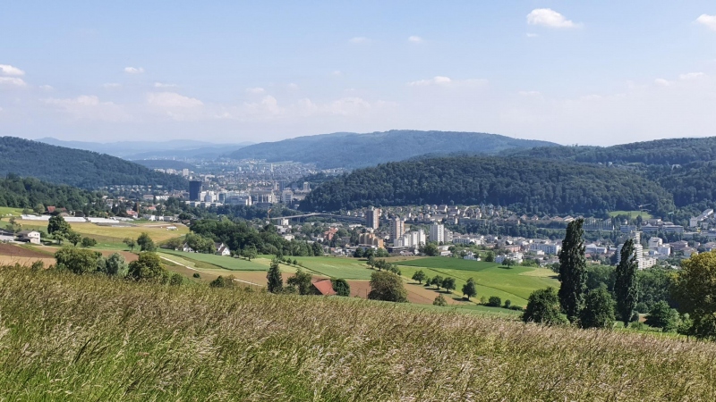 Das eine war ein kleines Gebiet zwischen dem Limmattal und dem Surbtal, das ich noch nie befahren hatte. Ab Kirchdorf ging es äusserst steil, bis 20% Gefälle, hinauf an den Waldrand. Dafür bekam ich aber eine schöne Aussicht hinunter ins Limmattal.
