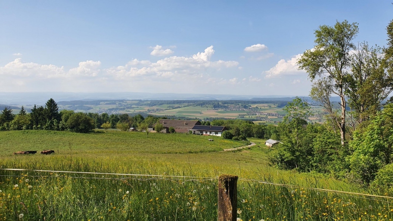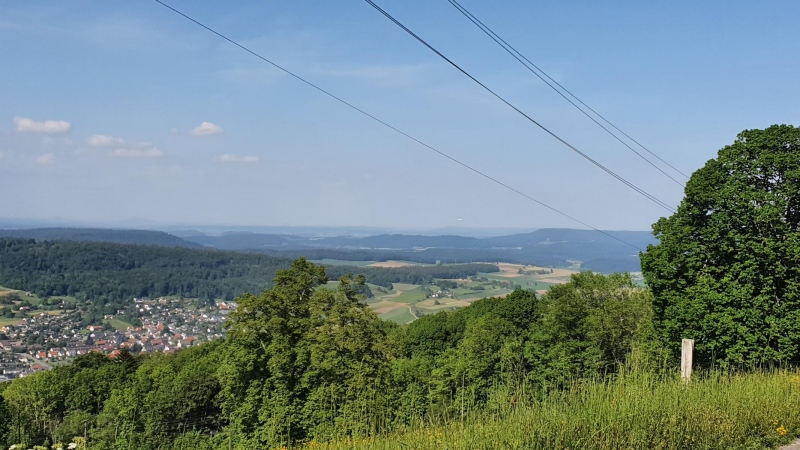 Meine Fahrt ging dann weiter durch den Wald, bald hinunter nach Unterehrendingen, dann Schneisingen und ab dann wiederum recht steil an die Lägern hinauf. Lange war die Strasse sogar geteert, ab dem letzten Bauernhof war es dann nur noch ein Kiesweg. Aber auch hier bekam ich eine schöne Aussicht, diesmal hinunter ins Surbtal.
