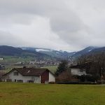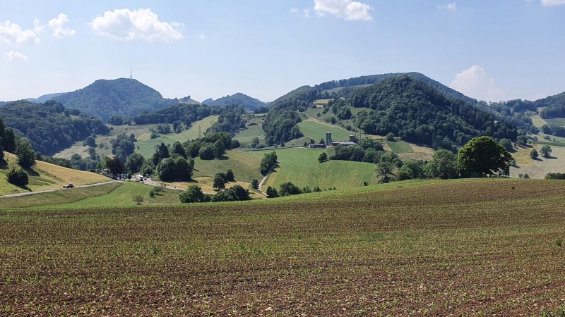 Der Blick in Richtung Norden, das Tal hinunter in Richtung Fricktal. Wobei das Fricktal bereits im Dunst verschwinden dürfte.