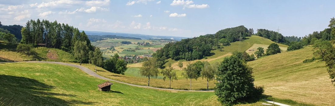 Er bietet während der Abfahrt hinunter nach Hottwil einen schönen Ausblick zwischen den Hügeln hindurch in Richtung Rheintal und dahinter Deutschland.
