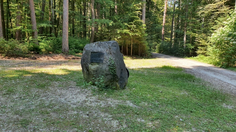 Der Grund für diesen Stein ist nicht sehr schön, weist er doch auf eine Erschiessung von Landesverrätern hin, die hier in der Gegend am 07.12.1944 vollstreckt wurde. Auf der Tafel im Stein, steht sinngemäss: “Durch organisierte Spionage haben sie der militärischen Verteidigung hohen Schaden zugefügt und viele Menschen zusätzlich in Gefahr gebracht. Das Militärgericht hat das Urteil gefällt. Die Vereinigte Bundesversammlung hat die Begnadigungsgesuche abgelehnt. Der Vollzug der Urteile bezeugt die Entschlossenheit von Volk und Armee im zweiten Weltkrieg die Unabhängigkeit unseres Landes gegen jede Bedrohung zu bewahren.”