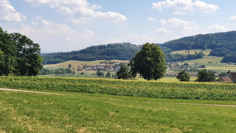 Danach geht es weiter durch den Wald. Oberhalb Schöfflistorf gibts den Blick ins oberste Ende des Surbtales.