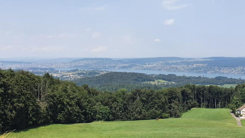 Etwas weiteroben, kurz vor der Passhöhe des Albis, nochmals ein Blick, diesmal sogar zurück bis zum Zürcher Seebecken.