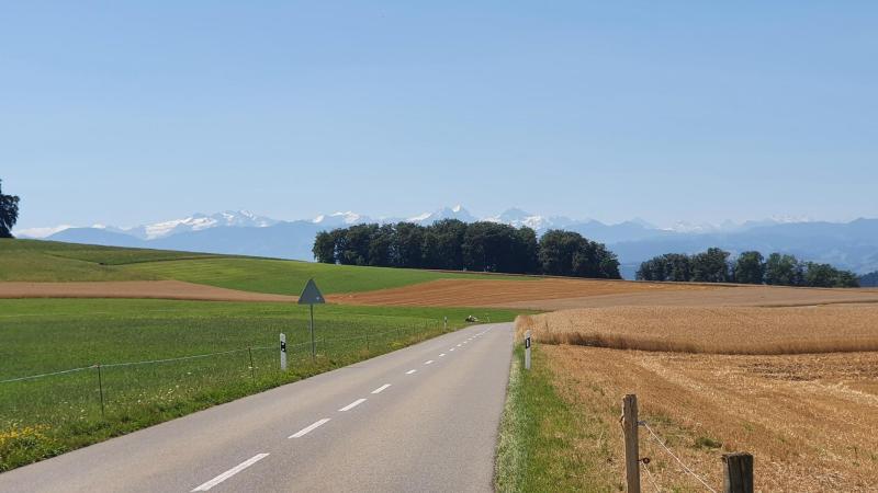 Noch ein paar Mal geht es über kleinere und grössere Hügel, die immer wieder einen schönen Blick in Richtung des Alpenkammes freimachen, bevor ich in der Gegend von Dagmarsellen ins Wiggertal hinunterkomme.