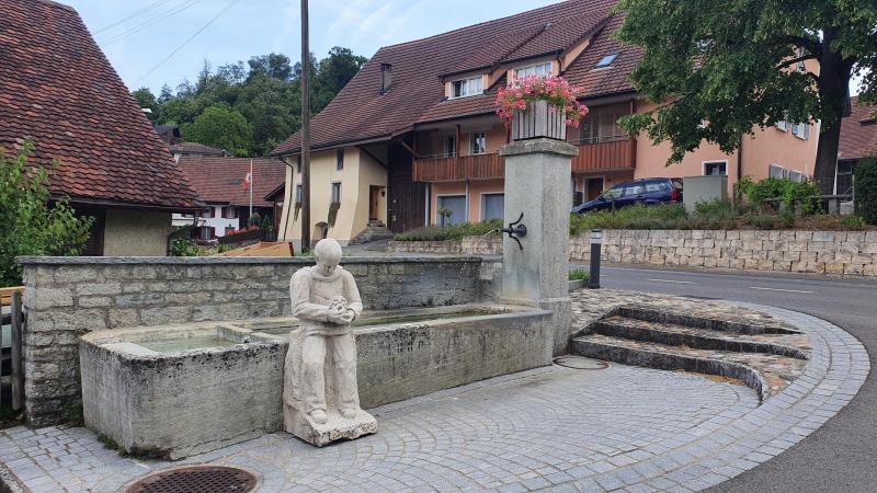 Ich fuhr ein Stück das Aaretal hinauf, um das Schinznacherfeld, einen kurzen Abstecher nach Oberflachs. Diese Figur an diesem Brunnen wollte ich schon lange einmal verpixeln. In der Hand hält sie Trauben, vielleicht als Hinweis darauf, dass hier in der Gegend, Schenkenbergertal, Weinreben angebaut werden.