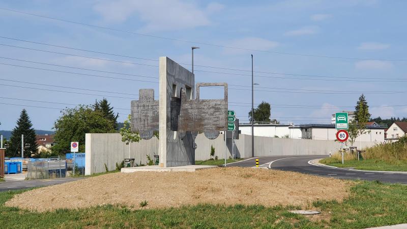 Kurz vor der Haustüre entdecke ich die eben neu aufgestellte Dekoration im Strassenkreisel ganz in der Nähe des historischen Bahnparks Brugg. Die symbolisierte Dampflok dürfte wohl ein Hinweis auf diesen Bahnpark sein, stehen dort doch gerade mehrere, solcher historischen Zeugen in einem Rundschuppen.