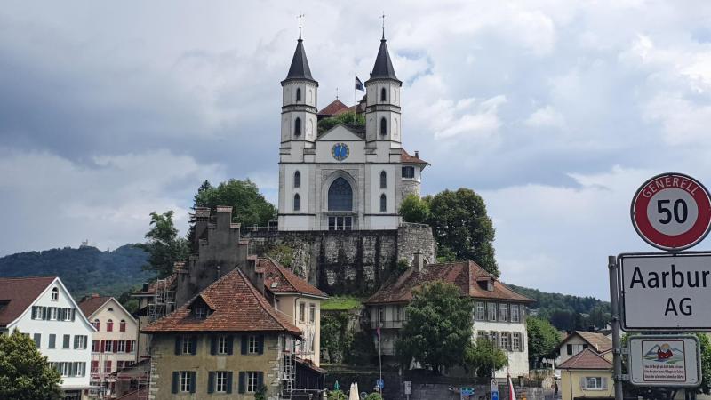 Eine steile Abfahrt, hinunter an die Autobahn Zürich-Bern und für mich auf den Radweg 34 (alter Bernerweg). Aus dem Nieselregen ist mittlerweile Regen geworden. Ich ziehe mir den Regenschutz über, fahre ostwärts auf dem Radweg 34. Wahrscheinlich fahre ich die längste Zeit neben dem Gewitter her. Denn streckenweise könnte ich den Regenschutz wieder ausziehen. In Suhr muss ich bei der geschlossenen Barriere etwas warten, ebenso in Lenzburg. Vielleicht habe ich da wertvolle Minuten verloren.
