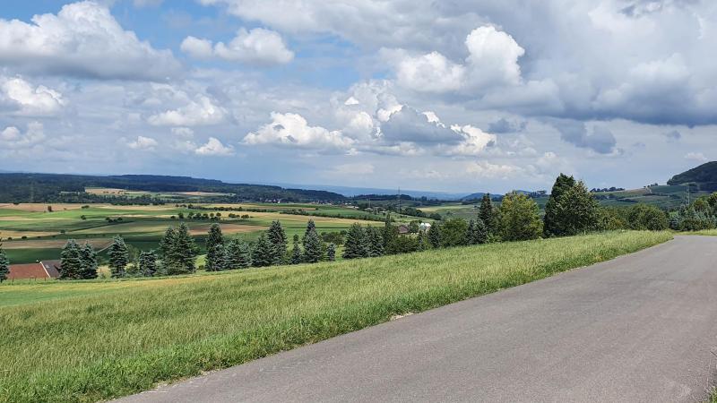 Ich bin dann aber doch überrascht, wie steil die Rampe von Zeglingen nach Oltingen hinauf ist. Dafür gibt es dort oben eine schöne Sicht über einen Teil des Basler-Juras.