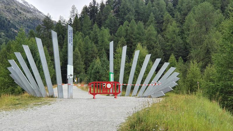 Etwas verunsichert setzten wir unseren Weg fort. Schon nach wenigen Metern stellte sich heraus, dass die Bäche und wahrscheinlich auch der Hauptbach im Tal, dem eigentlich sehr breiten und gut ausgebauten Wanderweg in den letzten Tagen arg zugesetzt hatten. Als Wanderer kam man zwar schon noch durch, musste vielleicht um die grössten Wasserlachen einen Bogen herum machen, aber für Biker ist der Weg an einzelnen Stellen schlicht unpassierbar. Derart aufgerissen, weggespült und zerstört war der Weg.