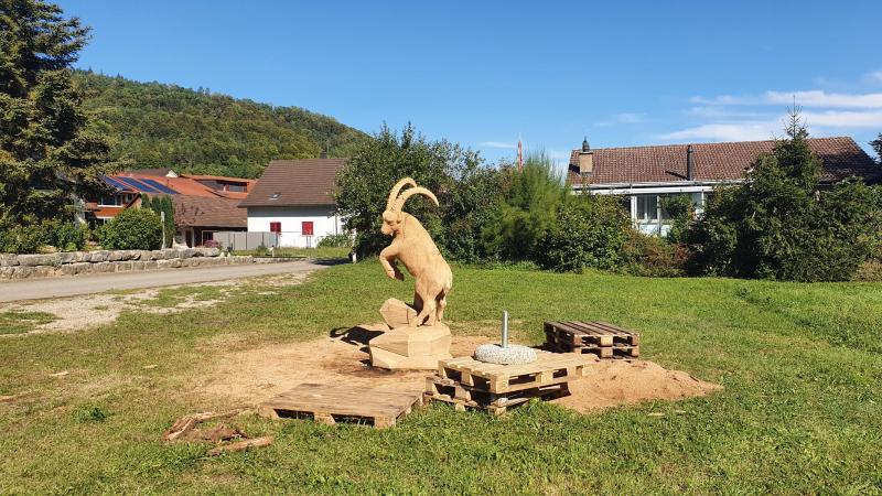 In Remigen begegnete ich einem Steinbock. Ich mag mich erinnern, dass vor wenigen Tagen hier ein Fest abgehalten wurde und einer mit einer Motorsäge an einem Baumstamm herum hantierte. Denke, dass ihm das gut gelungen ist.