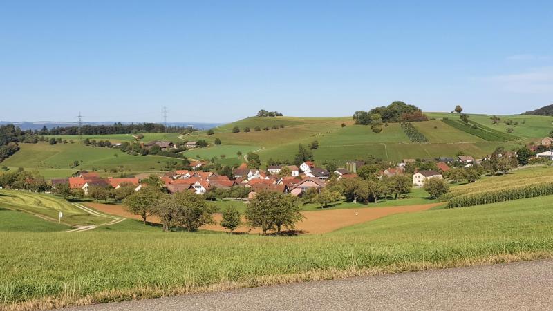 Teils gibt es etwas Unterstützung vom Rückenwind. Die Rebberge tragen bereits keine Trauben mehr, wenigstens soweit ich das von der Strasse aus erkennen kann. So reicht es heute halt nur für das Standardfoto nach Mandach hinunter.