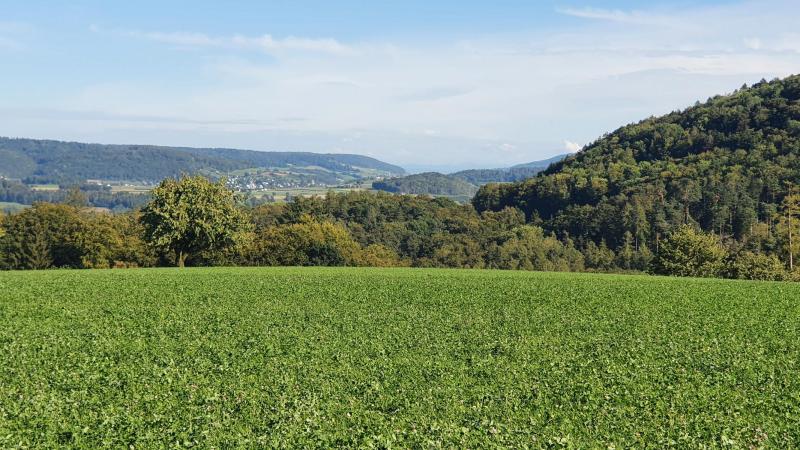 Kurz nach Mandach bleibe ich heute noch etwas in der Höhe und gelange so über eine Art Kanzel, welche einen schönen Ausblick in Richtung Aaretal und weiter das Limmattal hinauf bietet.