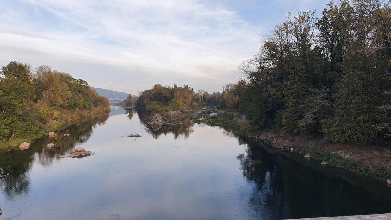Bei Hunzenschwil verliess ich die Radroute bereits wieder und fuhr ins Aaretal hinunter. Spiegelbild über der Aare könnte zur Not vielleicht ein Fotosujet sein.