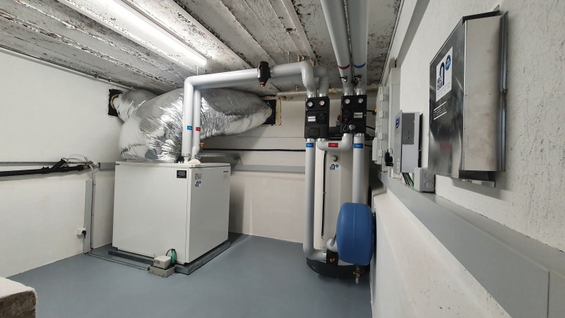 Das Baugesuch mit aussen aufgestellter Wärmepumpe wurde von der Gemeinde abgelehnt, wir müssen die Wärmepumpe im Keller platzieren. Da bietet sich natürlich der ehemalige Raum des Öltankes an.