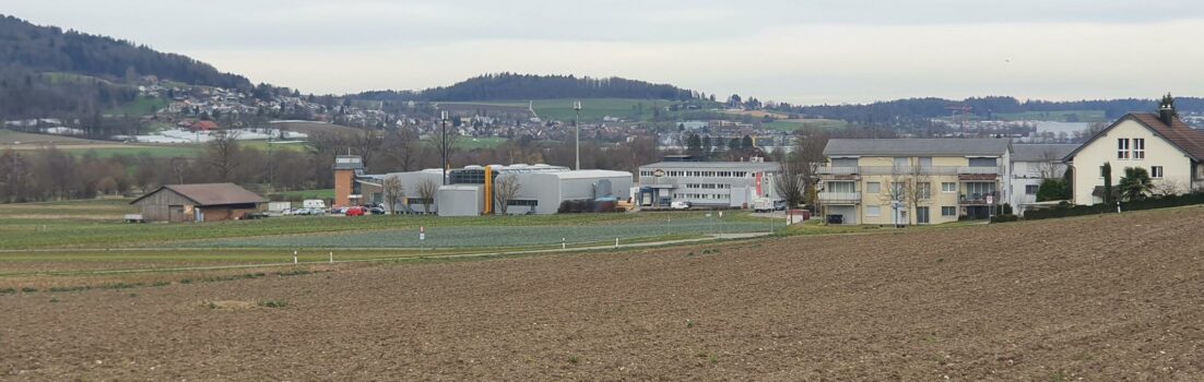 Der Blick zurück, ein Gemisch aus Industriequartier und Landwirtschaftszone. Die Sonne ist schon längst verdeckt durch die Wolkendecke.