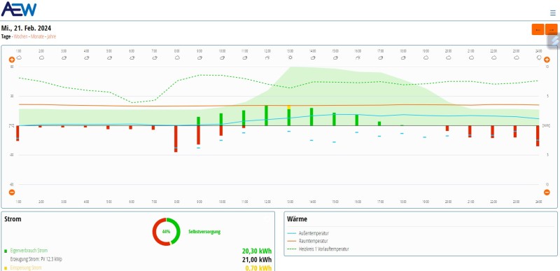 Den bisher besten Tag hatten wir am 21. Februar mit einer Selbstversorgung von 44%.