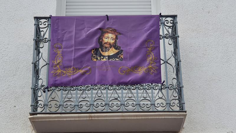 An einigen Balkonen hängen, meist auf Tüchern aufgemalt, Jesus und vermutlich Maria. Diese Gegend hier scheint mir besonders christlich zu sein. Denn schon gestern konnten wir von weitem in Carboneras für kurze Zeit einer Prozession zuschauen. Dabei wurden übergrosse Statuen von Jesus und Maria durch die Strassen getragen.