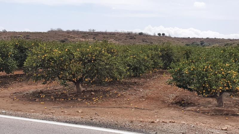 Nach dem Essen geht es eine längere Rampe in die Höhe, bevor wir anschliessend die Orangenplantage hinunterfahren.