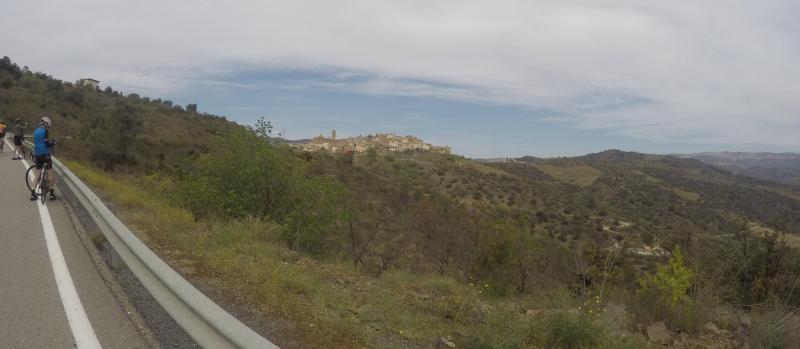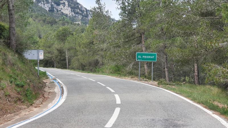 Ein letzter Blick zurück nach Gratallops, bevor wir durch eine Felslücke in ein anderes Tal verschwinden. Nach einer zügigen Abfahrt, geht die Strasse langsam in eine Steigung hinüber, hinauf zum Coll de la Teixeta.