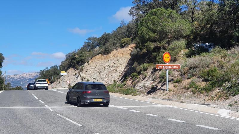 Die gestrigen, zeitweise sehr heftigen und böigen Winde, hatten ein bisschen nachgelassen. Was aber blieb war die Kühle. An den Bergen und über dem Meer hingen anfänglich riesige Wolkenbänke. Doch während unserer Fahrt über die Ebene zum Coll d’Alforja hinauf, vertrieb der Wind wohl die Wolken, kühl blieb es aber weiterhin.