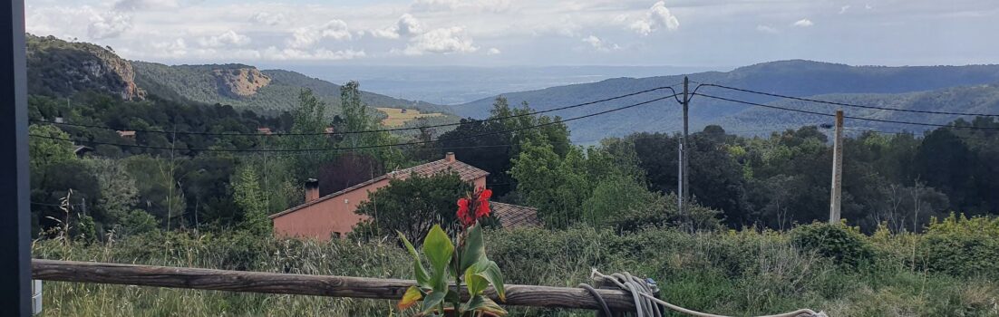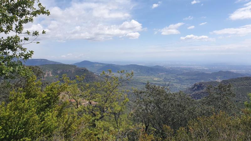 Es war der bisher kühlste Morgen meines diesjährigen Aufenthaltes in Katalonien. Mit übergezogenen Armlingen machten wir uns auf den Weg. Quer über die Ebene, dann hinauf auf La Mussara. Die vielen Spitzkehren während des Aufstieges erlauben immer wieder einen Blick hinunter und hinüber zum Meer. Überall dunkle Wolken, doch Regen war keiner angesagt, wenigstens nicht in unmittelbarer Nähe. Auch der Wind verhielt sich über weite Strecken ruhig.