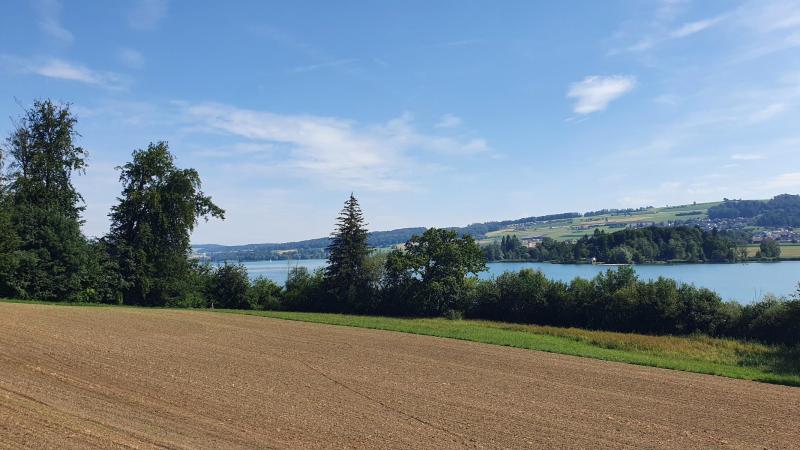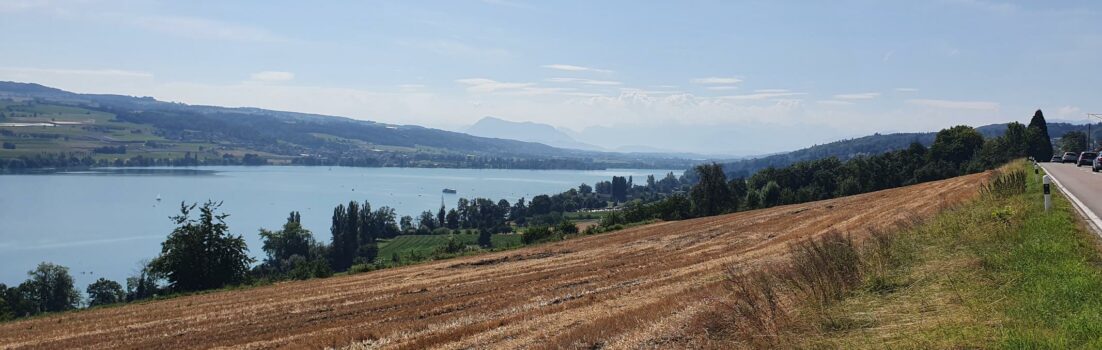 vorbei an blühenden Maisfeldern, und abgeernteten Getreidefeldern bis nach Villmergen hinauf. Dort nahm ich das ehemalige Bahntrasse bis nach Sarmenstorf hinauf, und gelangte so schon bald ins Seetal hinüber.