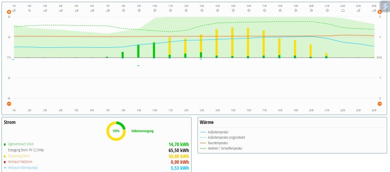 Ob wir tatsächlich bis Ende Jahr gleich viel Strom produziert haben, wie wir während des Jahres verbraucht haben, dürfte stark vom kommenden Herbst abhängig sein. Wird es früh sehr kühl, werde ich wohl die Wärmepumpe wieder einschalten. Damit wird der Stromverbrauch auch wieder sichtbar ansteigen. Die braune Kurve in obiger Darstellung wird ebenfalls wieder zu steigen beginnen, während die blaue Kurve der Stromerzeugung immer mehr abflacht.