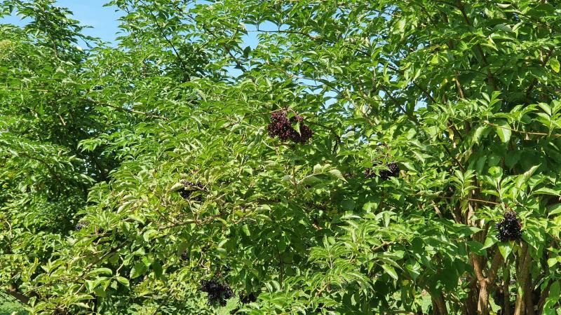 Die Brennerei macht unter anderem aus Holunder Schnaps. Dazu steht ganz in der Nähe eine ganze Plantage von Holunderbäumen. Im Frühling hatte ich da schon einmal ein Foto dieser blühenden Bäume gemacht.