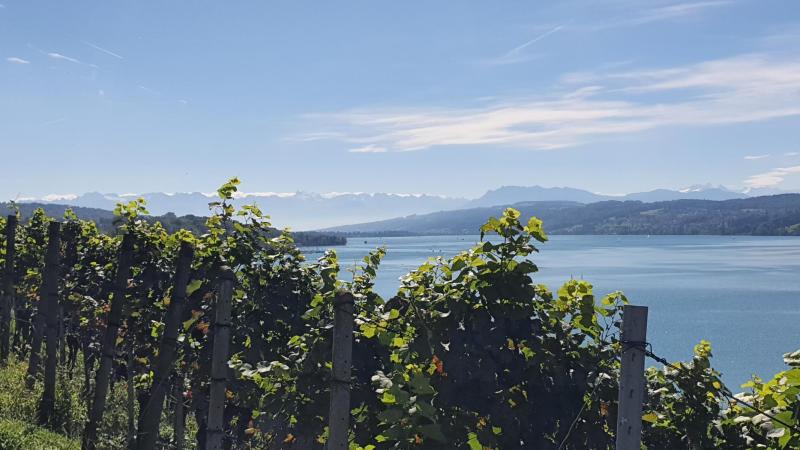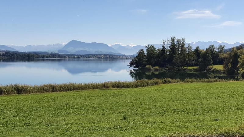Offensichtlich hatte sich der Biswind gelegt. Der See jedenfalls lag still wie noch selten da und spiegelte so die Alpen. Markant in der Mitte des Bildes die Rigi.