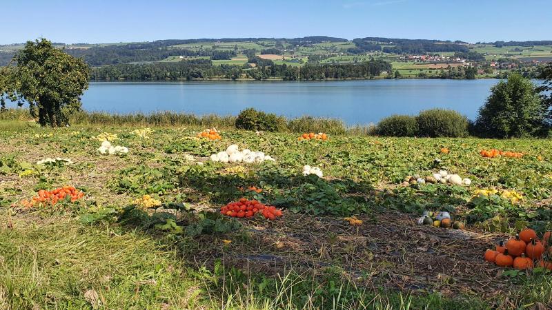 An einer Stelle wurden die Kürbisse schon mal nach Sorten bereitgelegt. Es dürfte wohl auch hier nicht mehr lange dauern, bis diese in den Verkauf gelangen.