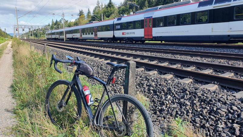Die Bahnstrecke ist hier viergleisig. Zwei Gleise werden in Blickrichtung weiter vorne, weiterhin im Aaretal bleiben und Ortschaften wie Brugg und Baden bedienen bevor es weiter nach Zürich geht. Zwei Gleise werden in Rupperswil nach Lenzburg abzweigen, später durch den Heitersbergtunnel nach Zürich gelangen. Alle paar Minuten fährt hier in die eine oder andere Richtung ein Personenzug durch. Dazwischen vereinzelt auch noch ein paar Güterzüge.