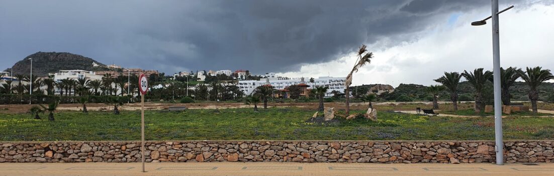 Nach ein paar Blitzen und dicken Regentropfen fielen bald auch einzelne Hagelkörner. Es reichte mir gerade noch in der Hotelanlage unter ein Dach zu flüchten.
