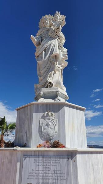 Über allem und zentral gelegen zwischen der Hafenanlage und dem Badestrand steht die Marmorstatue der Santa Maria de los Dolores.