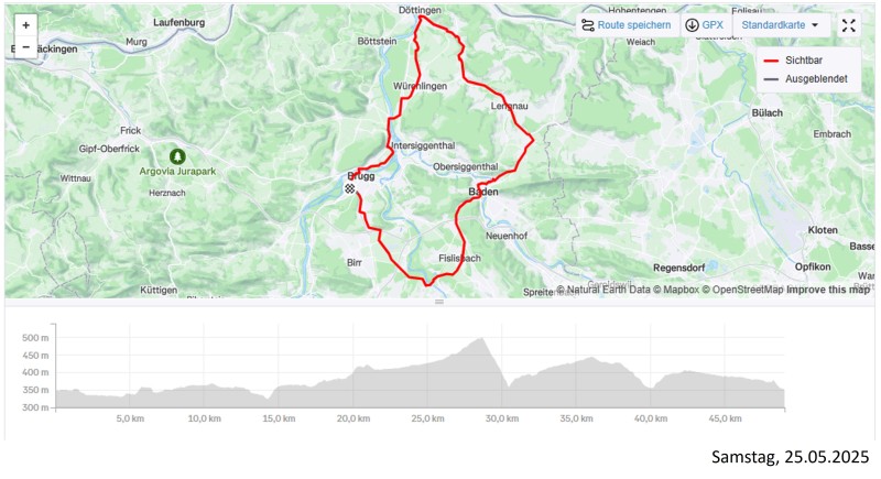 Ich fahre das Aaretal hinunter, biege dann bei Döttingen ins Surbtal ab. In den letzten Wochen hatte ich mir ein neues Garmin, das Edge 1040, gekauft. Die Datenübernahme vom alten Edge 1030 hat wunderbar funktioniert. Es hat gegenüber dem 1030 ein paar zusätzliche Features, die probierte ich heute mal aus.