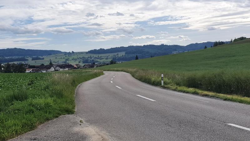 Im Aaretal hatte ich noch Gegenwind. Hier zwischen den Hügeln war davon aber nichts mehr zu spüren. Trotz der Bewölkung war aber die Temperatur recht angenehm.