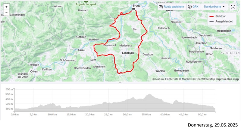 Nach Othmarsingen ging es noch einmal hinauf über Mägenwil ins Birrfeld. Ein paar letzte Kurven und ich war schon bald wieder zu Hause.