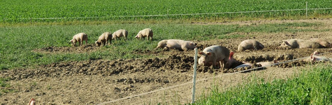 Bald verlasse ich die Radroute 34 und fahre über Brunegg und später dem Birrfeld entlang nach Hause. Kurz vor Hausen gibt es dort jeweils ein Gelände mit Schweinen.