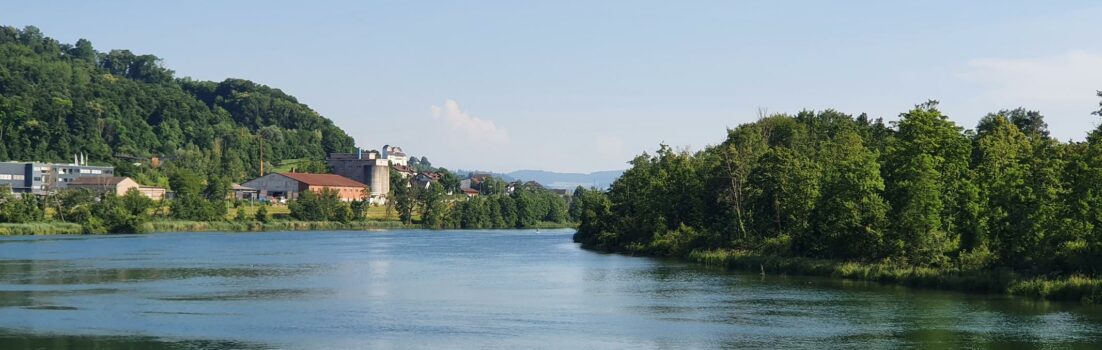 Auch hier, immer wieder schön, die Sicht der Aare entlang hinauf, zum Schloss Wildegg, und manchmal auch viel weiter bis in die Alpen.